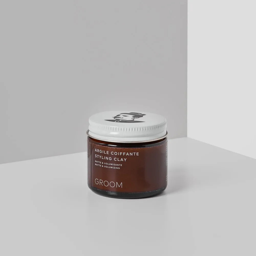 Argile coiffante pour tous types de cheveux à tenue moyenne. Fait à la main à Montréal avec des ingrédients éthiques d'origine naturelle. Plus d'info